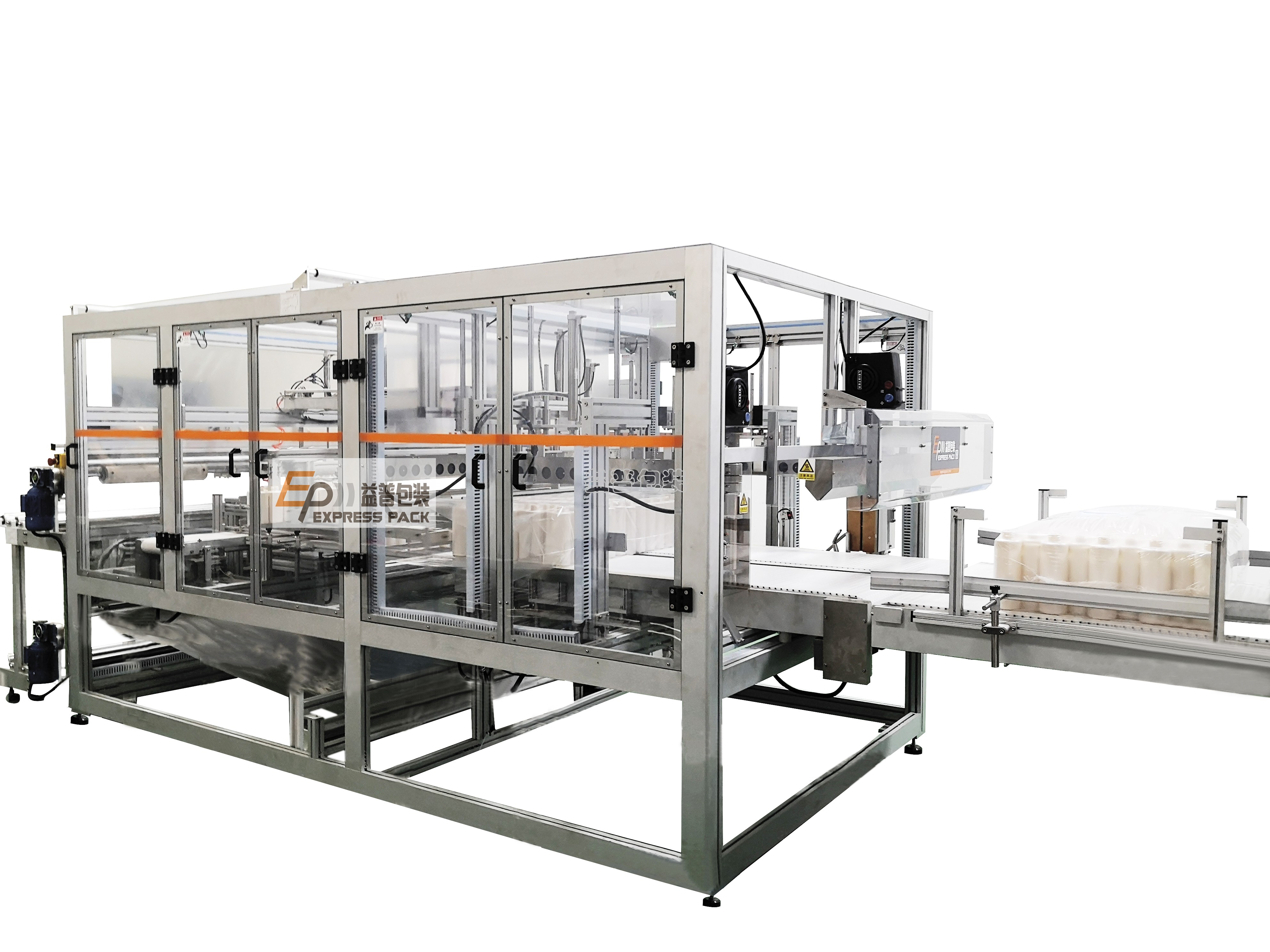 Automatic Bagging machine, with self-made bag from rolls of thermo shrinkable film, is flexible to work with different bottles formats. It is usually installed after blower and leak tester. Our standa